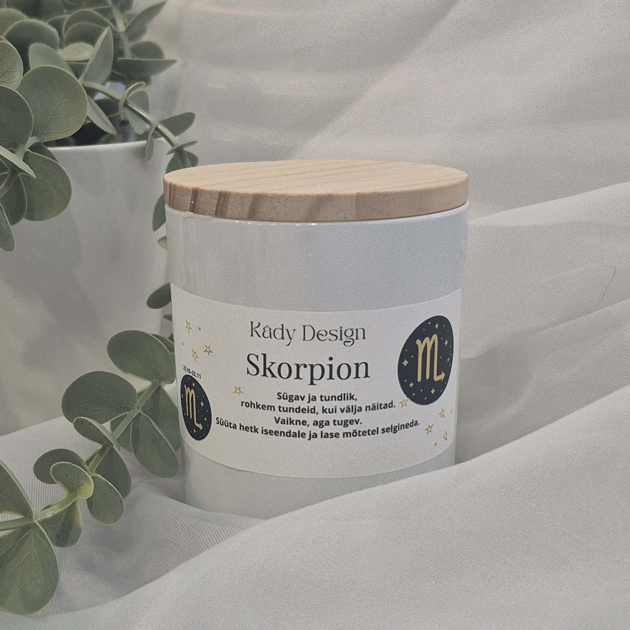 Käsitööna valminud küünal — õrn tekst, soe valgus ja sügav rahu, mis jääb sinuga.